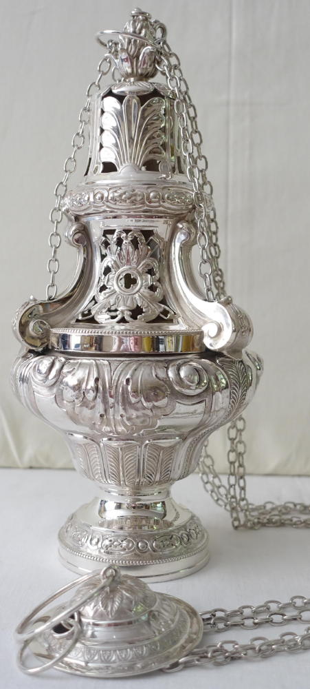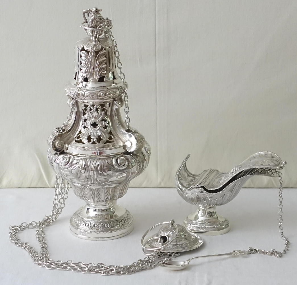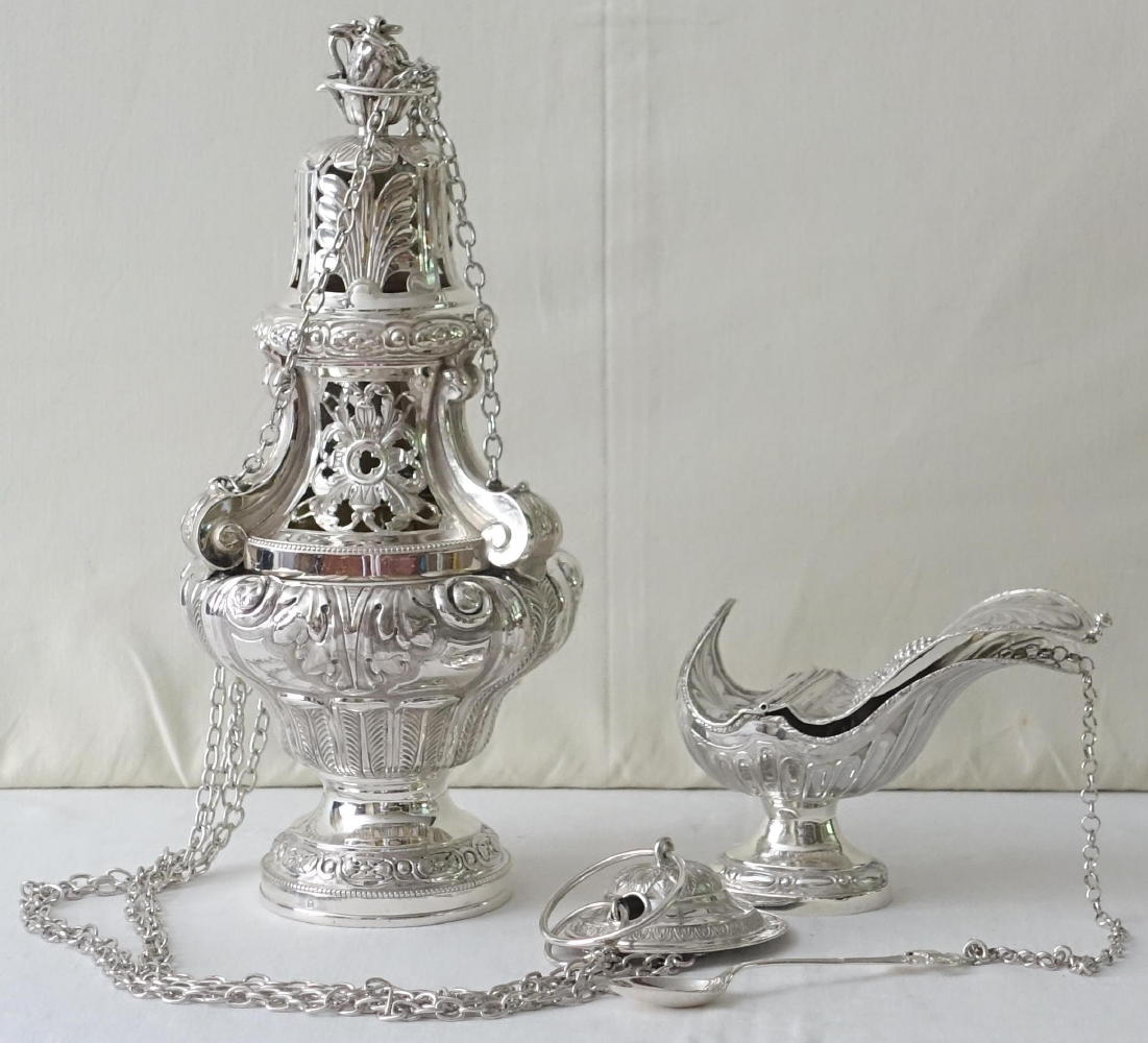 Baroque style Thurible and Boat, finished with Baroque style decoration throughout.