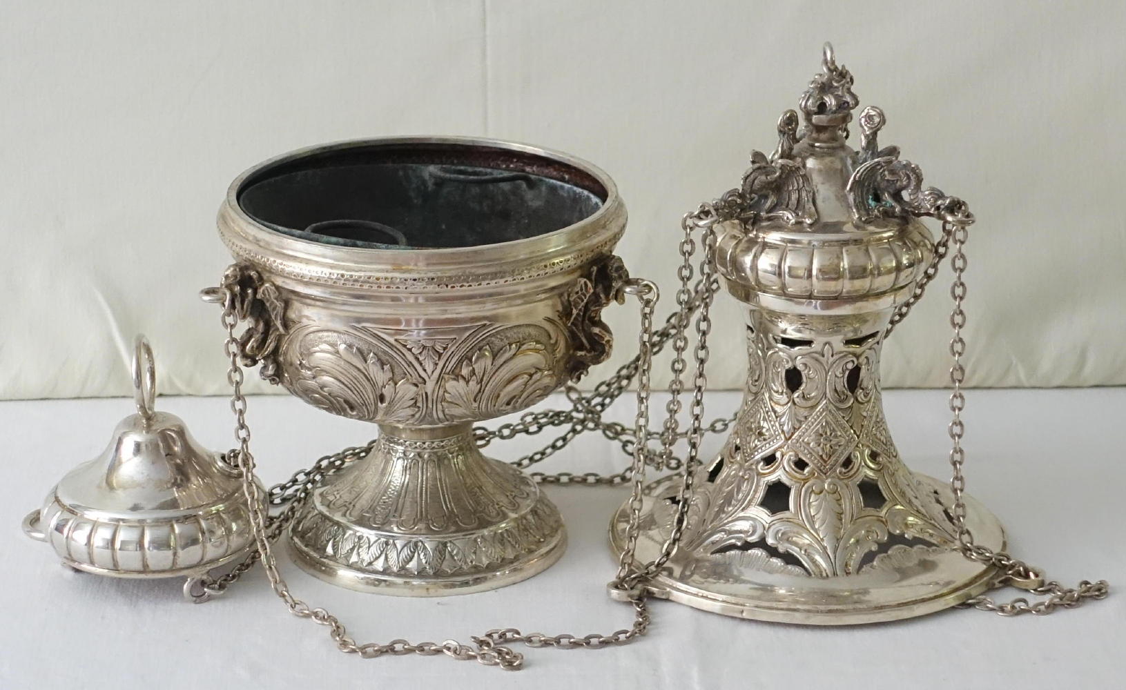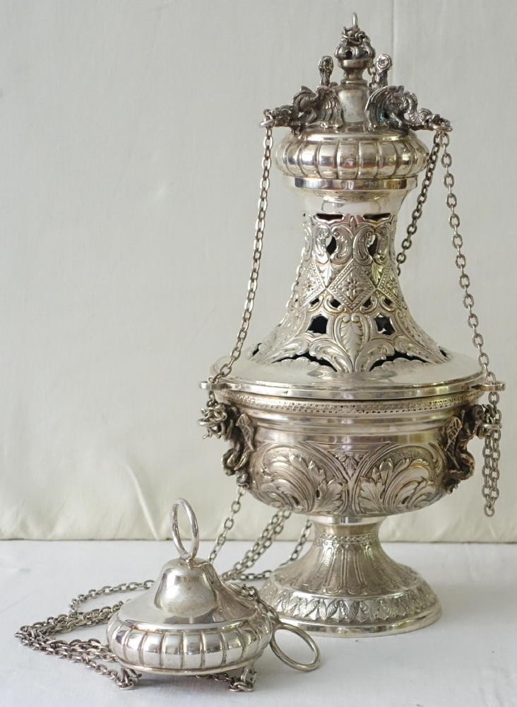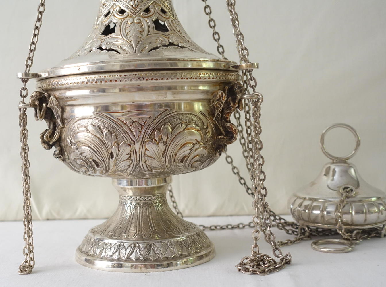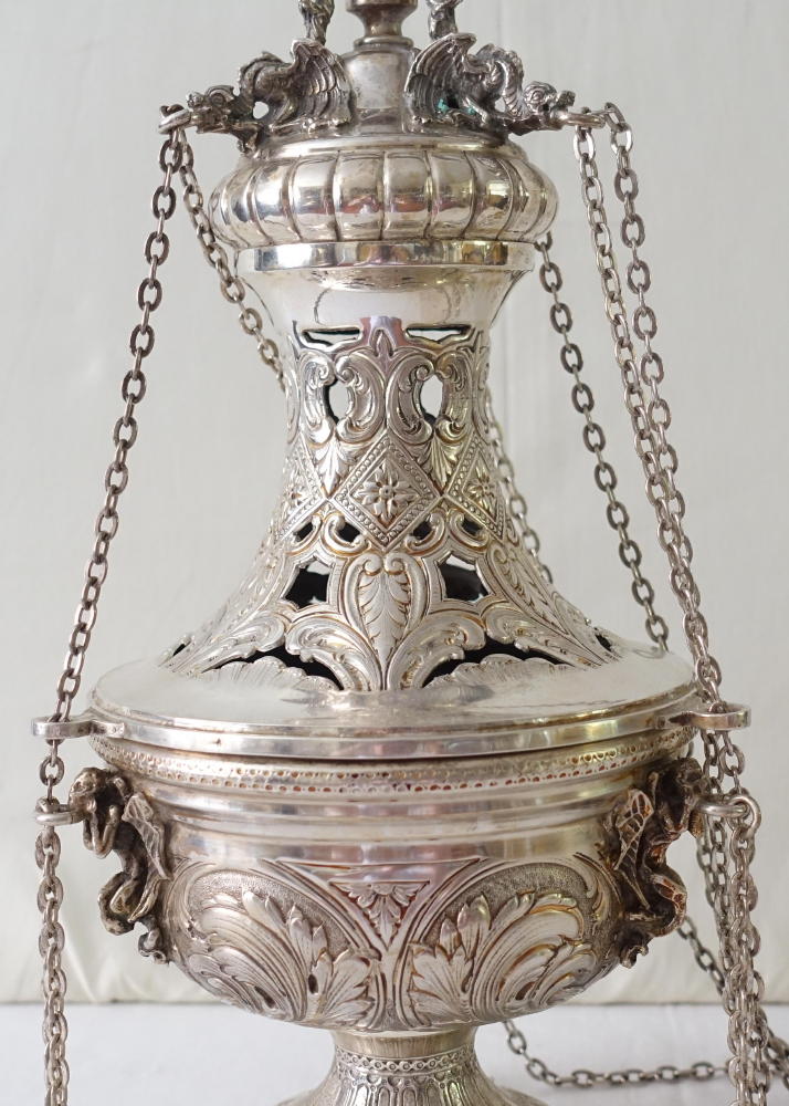 Spanish Thurible dating from around 1950. Made in solid silver, very large and ornate, with decoration throughout.