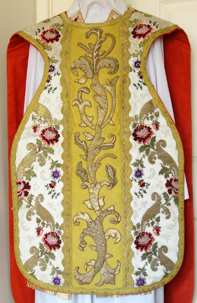 5 matching: Chasuble, Stole, Maniple, Chalice Veil & Burse. Price £4,995. (US$6,995)