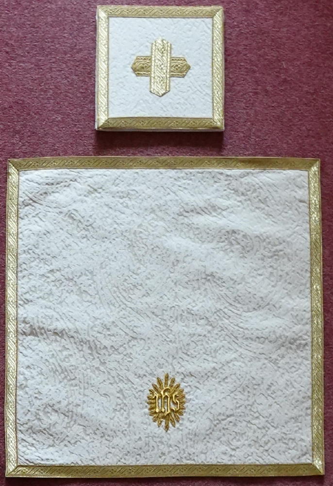 Ref 8782 - White Low Mass Set in lightly patterened silk.