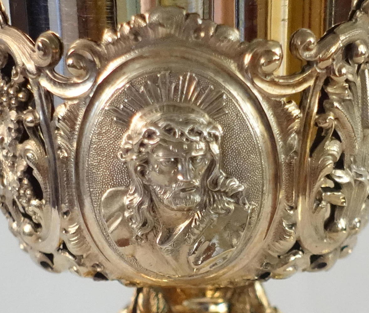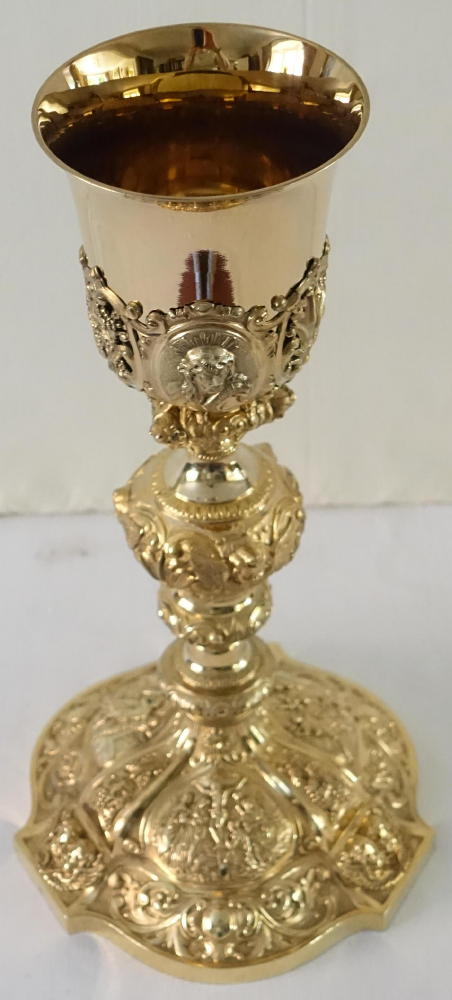 More detailed pictures of this French Antique Baroque Chalice and Paten are illustrated below: