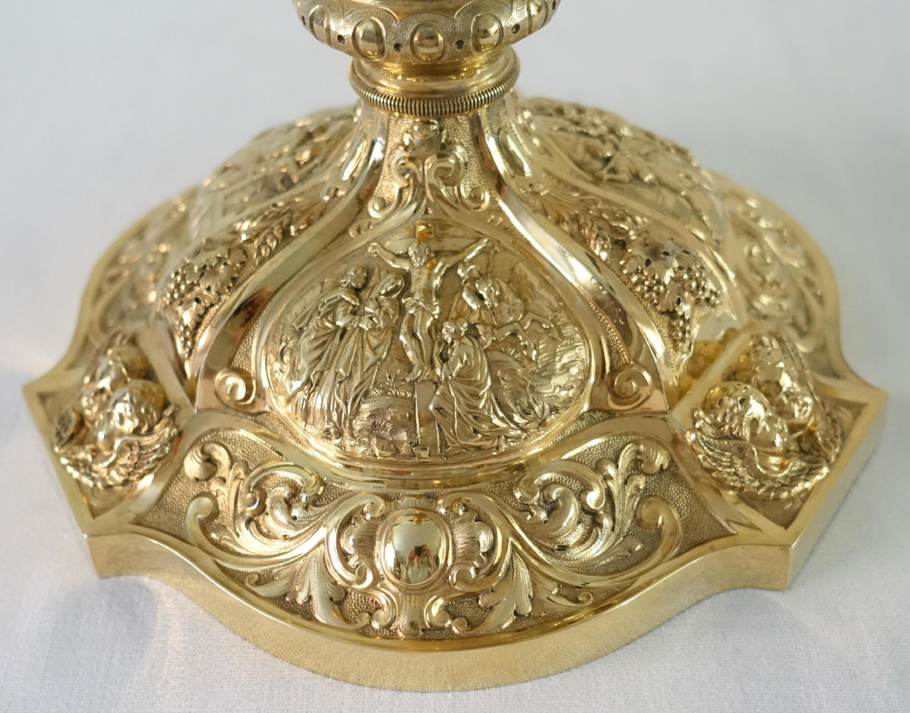 19th century French Chalice and Paten in Baroque style made in solid silver gilt.