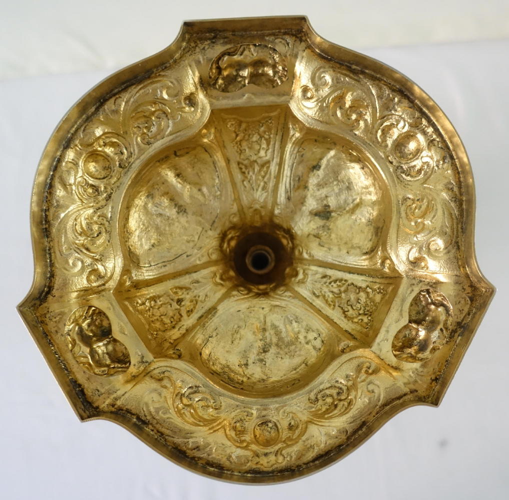 The edge of the base has three pairs of raised Cherub heads, between which is baroque style decoration.