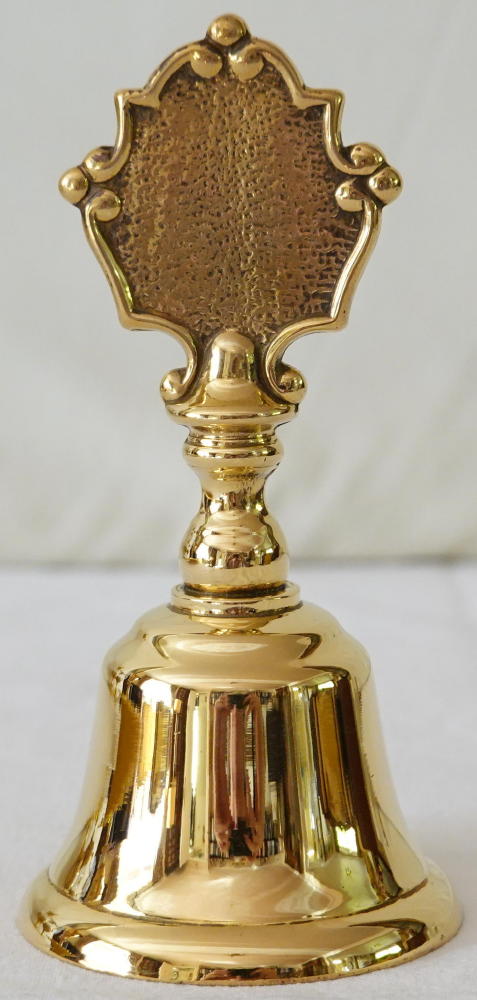 The Sanctus Bell is made in brass and has a decorative shaped handle.
