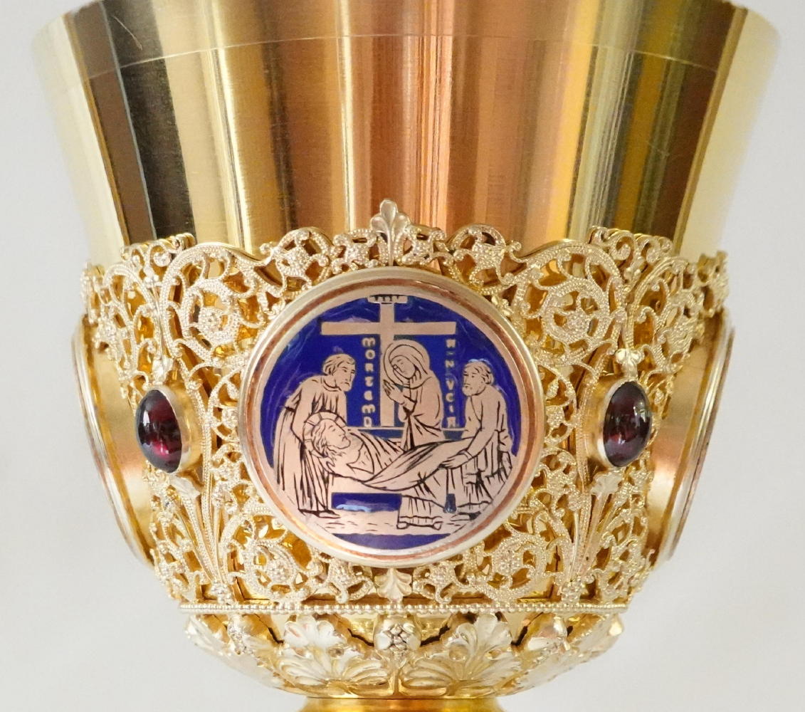 The Chalice has a calix made in filigree work, and set with four circular enamels.