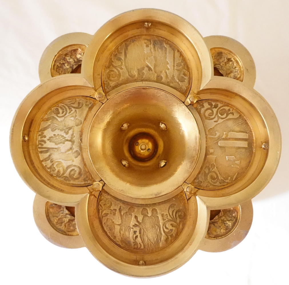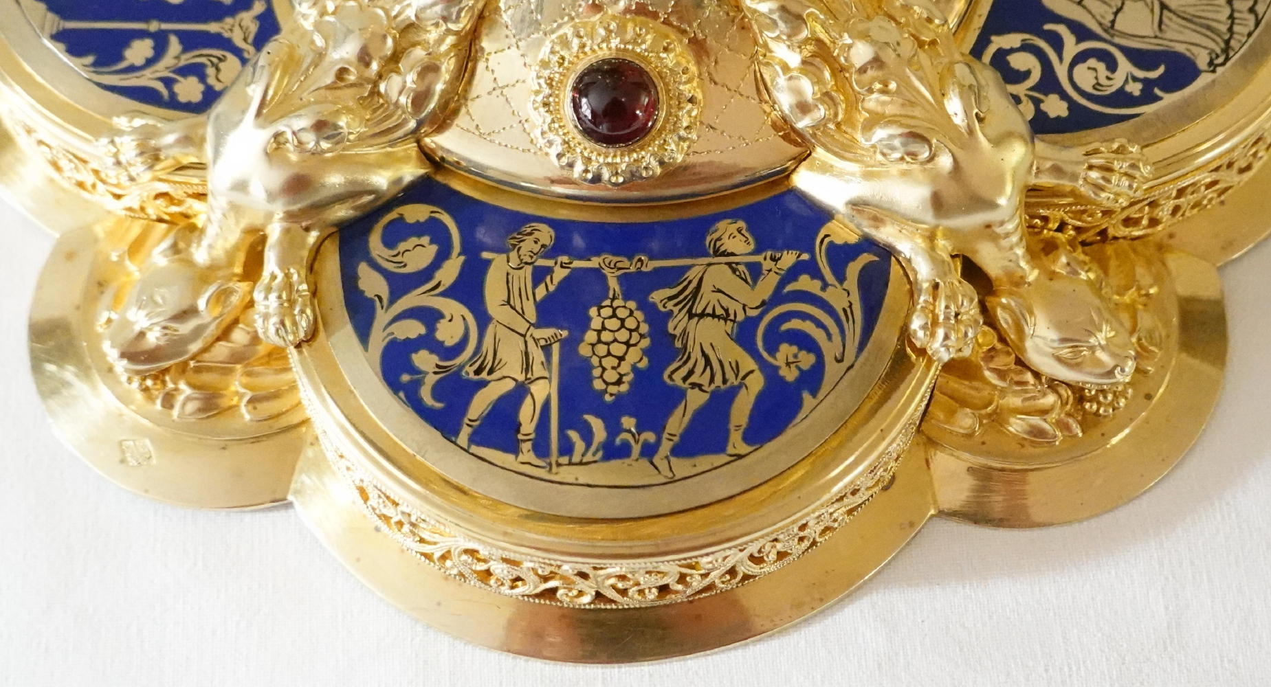 The base of the Ciborium also matches the Chalice, with gargoyles, enamels of Old Testament Scenes, stones and filigree work.