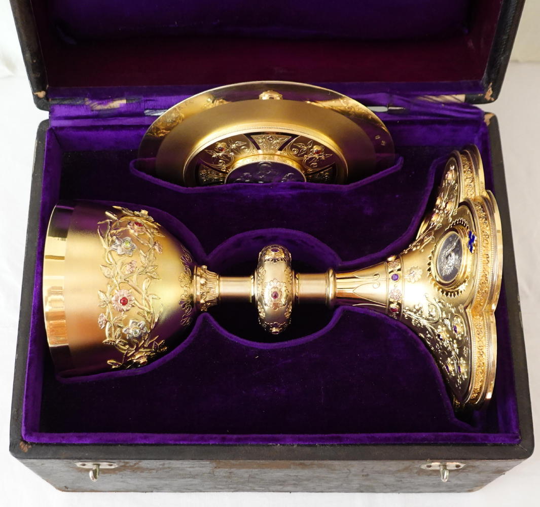 Chalice & Paten made in France in the 19th century, by the Silversmith Louis Bachelet, who worked in Paris between 1844 and 1877.