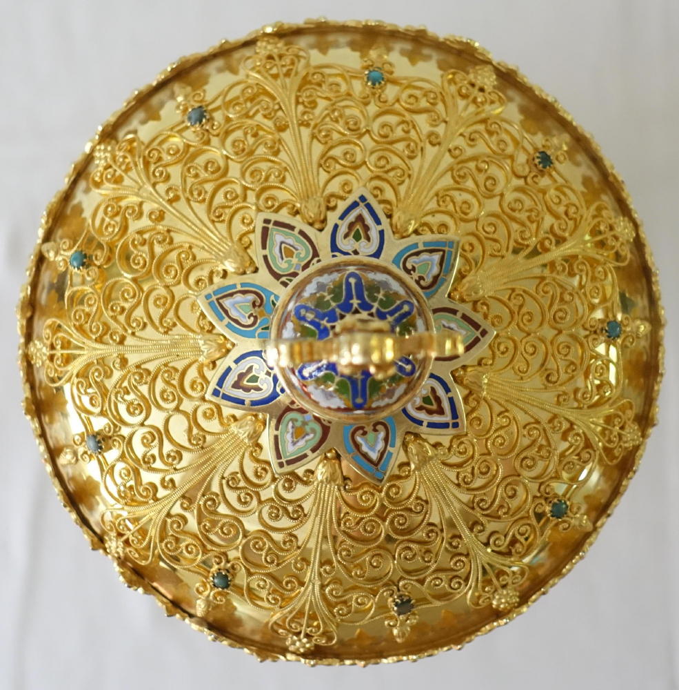 The lid is finished with fine filigree work, set with small coloured stones round the edge.