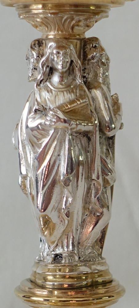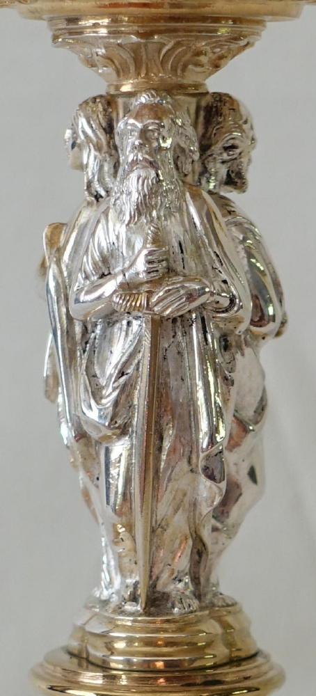 The stem is formed from three standing figures, in contrasting silver, of St Peter, St Paul & St John the Evangelist.