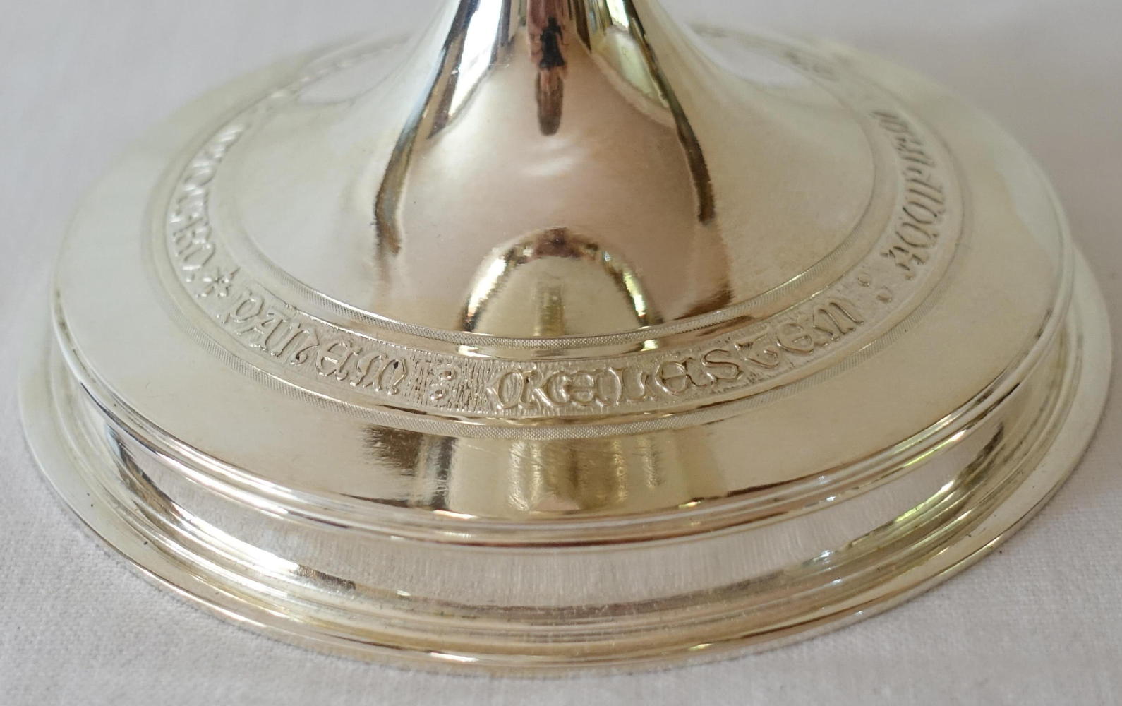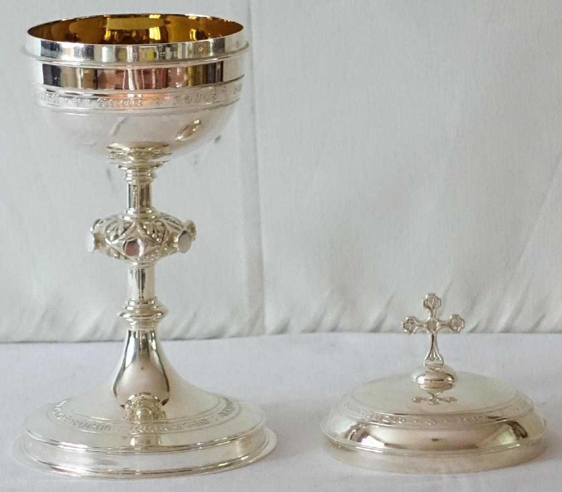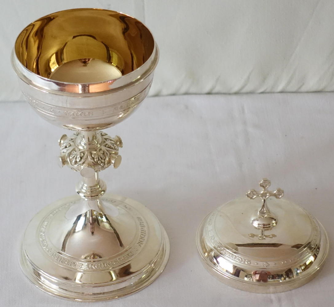The circular base has further engraving of 'Panem Coelestem Accipiam Et Nomen Domini Invocabo'.