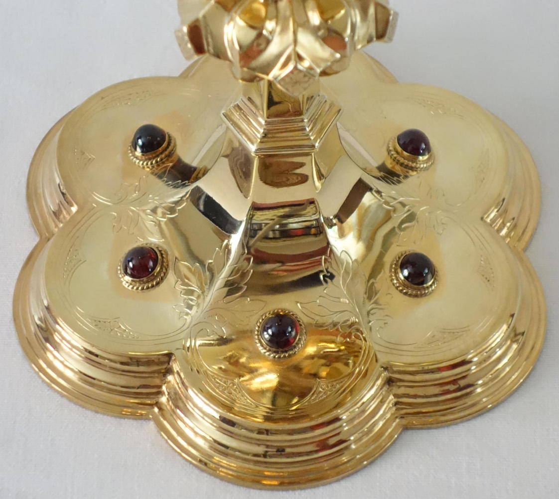 The Ciborium is completely solid silver, and is gilded all over. It bears the sterling silver hallmark and maker's mark throughout.