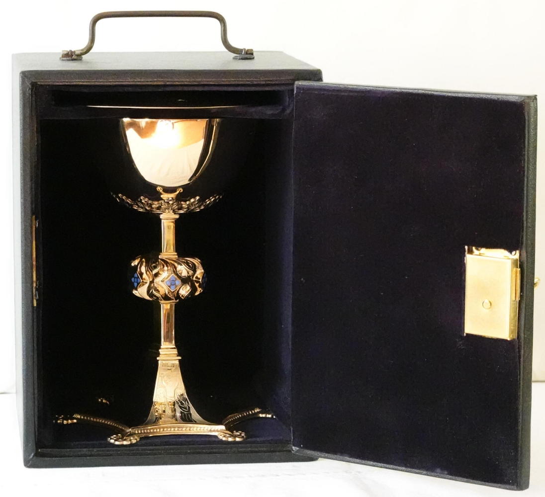 Chalice comes complete with original lined, fitted carrying case complete with working lock and key.