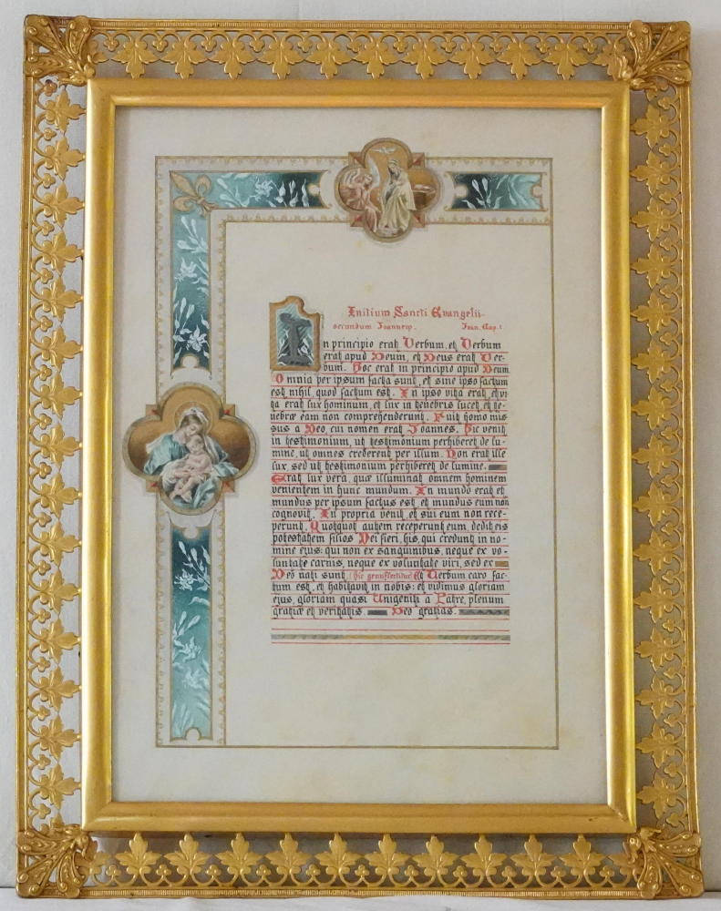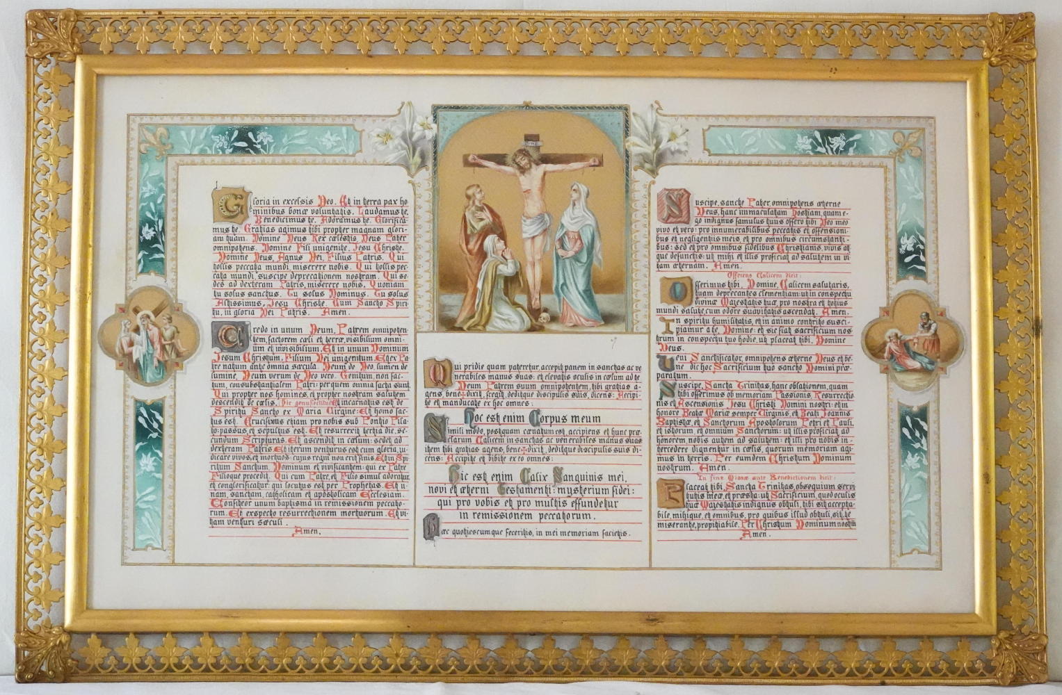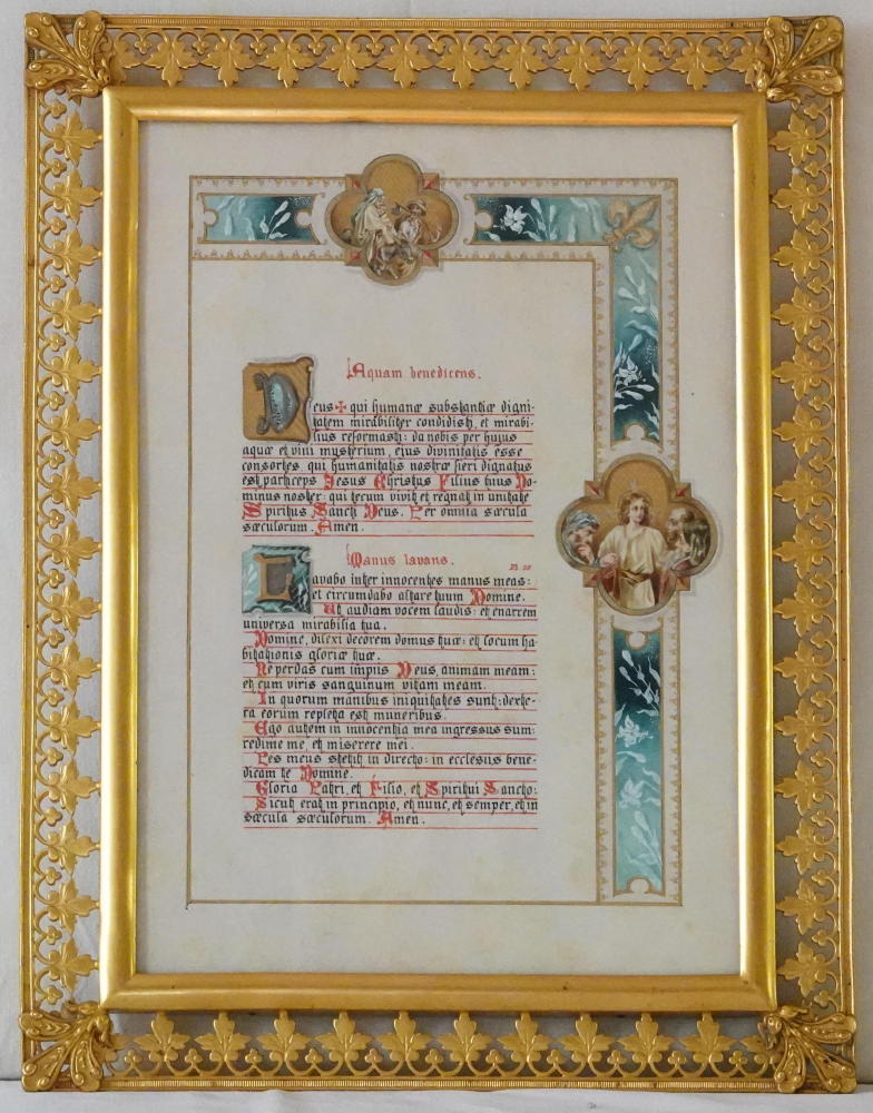 Hand painted illustrated Altar Cards in decorative brass frames.