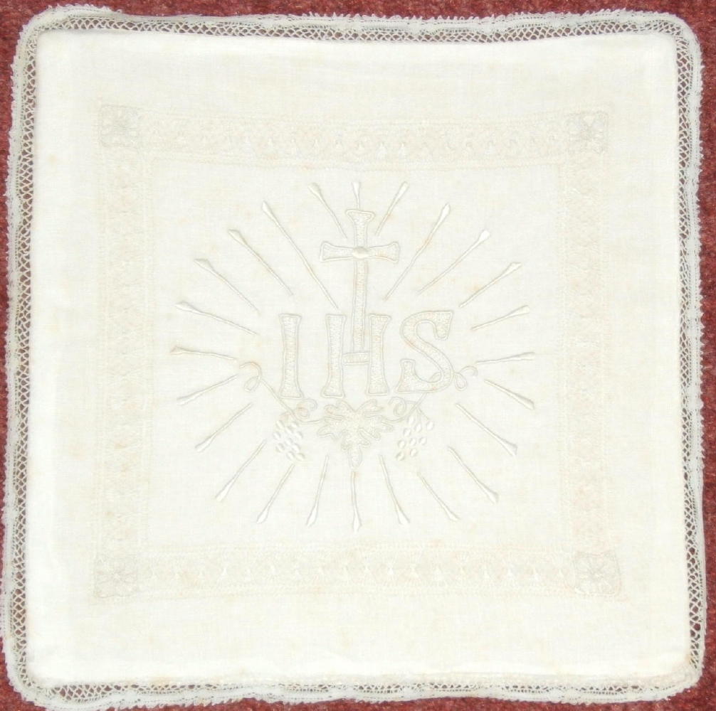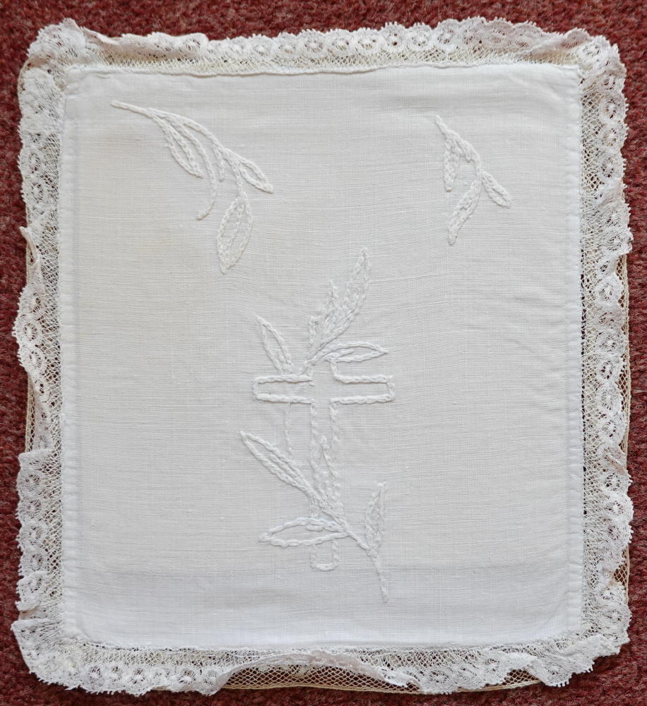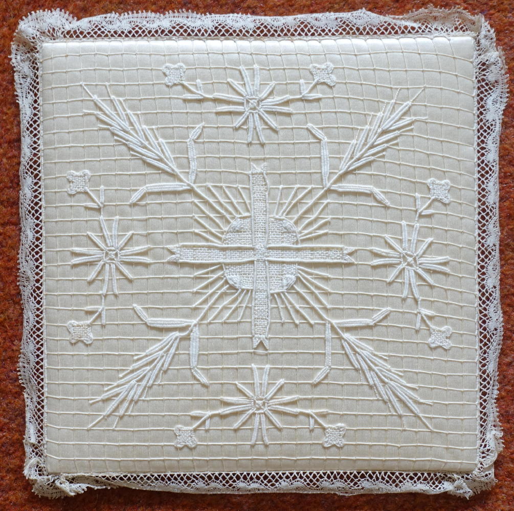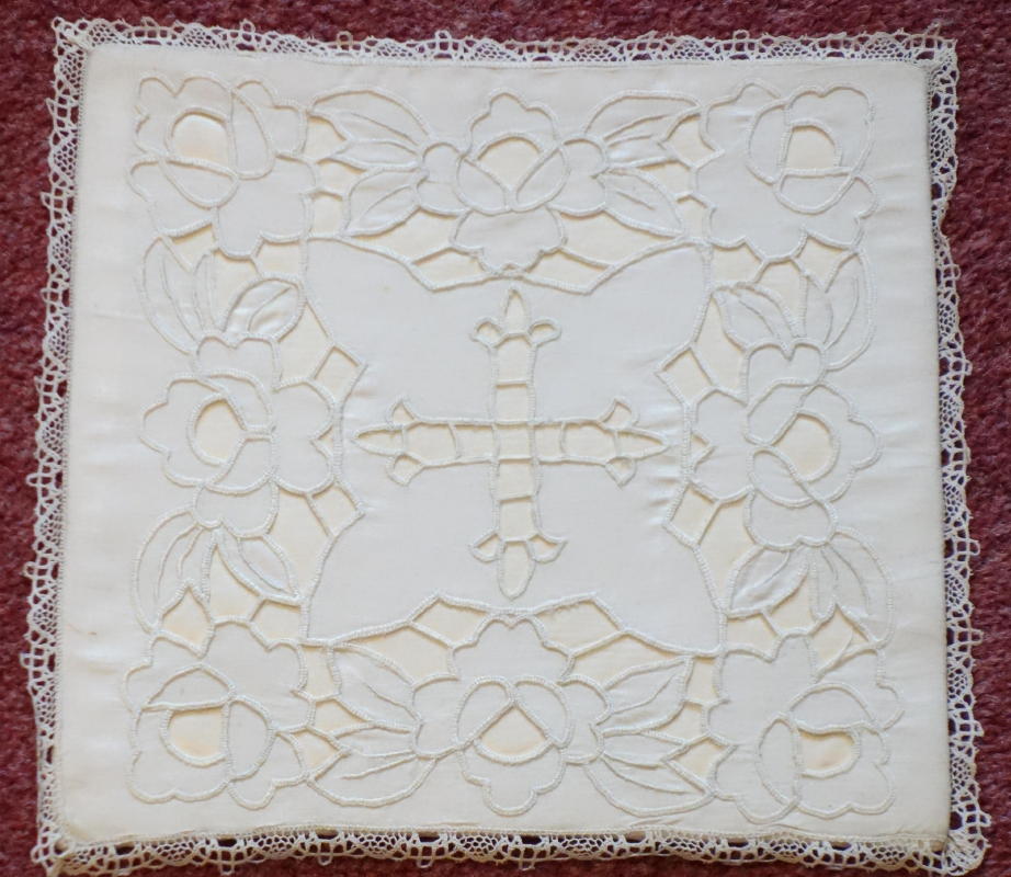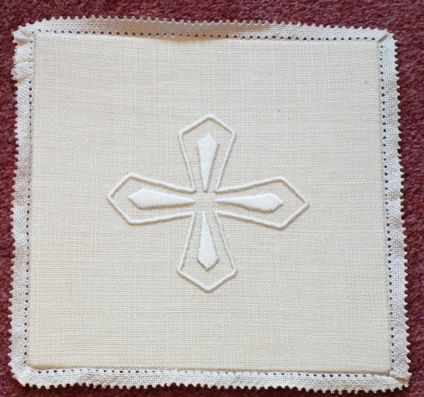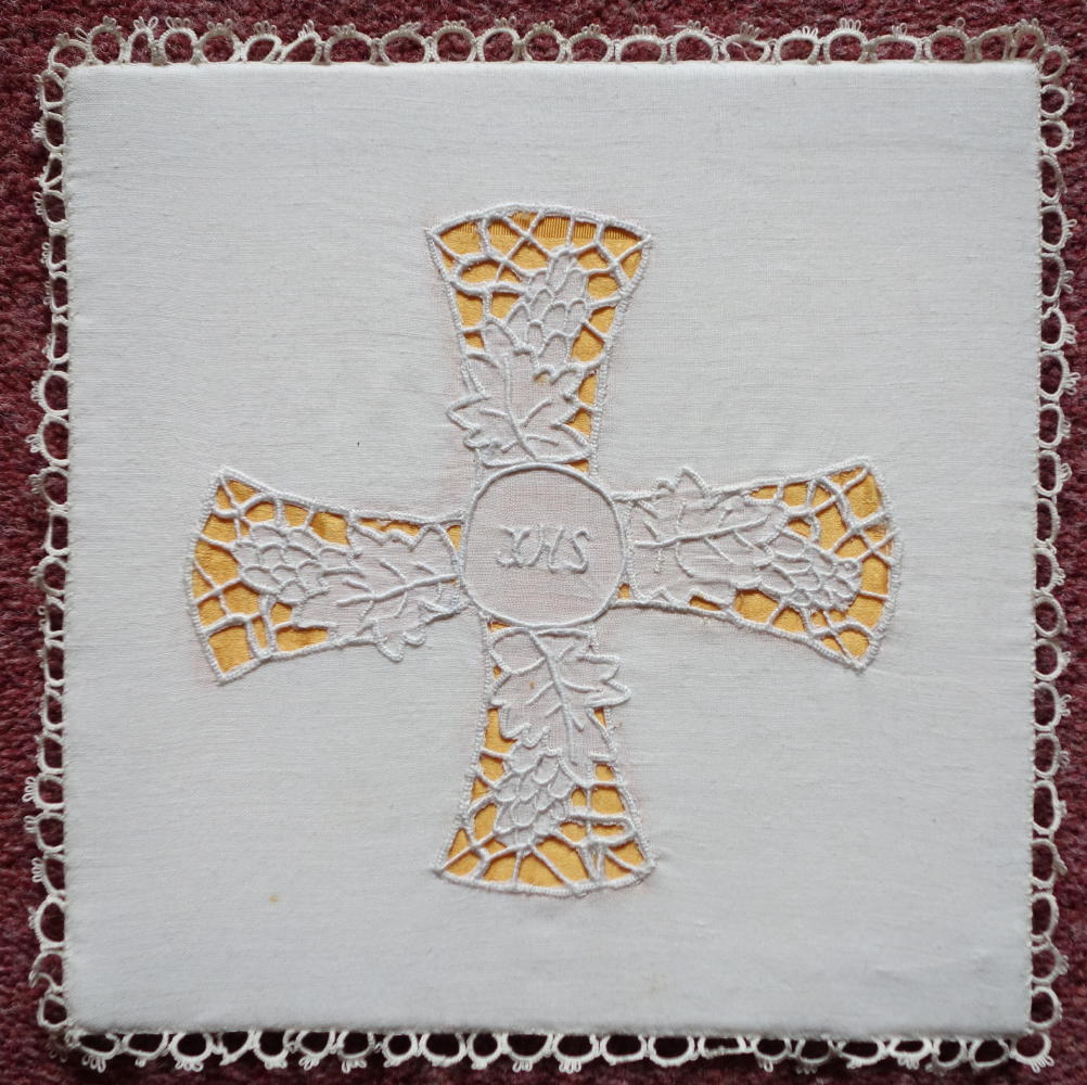 We usually have a variety of second-hand Altar Linens in stock. These currently include Purificators, Corporals, Lavabo Towels, Palls, both plain and with embroidery or lace. Below are items from our current stock, but our stock does change all the time, so please contact us for up to date details of availability.