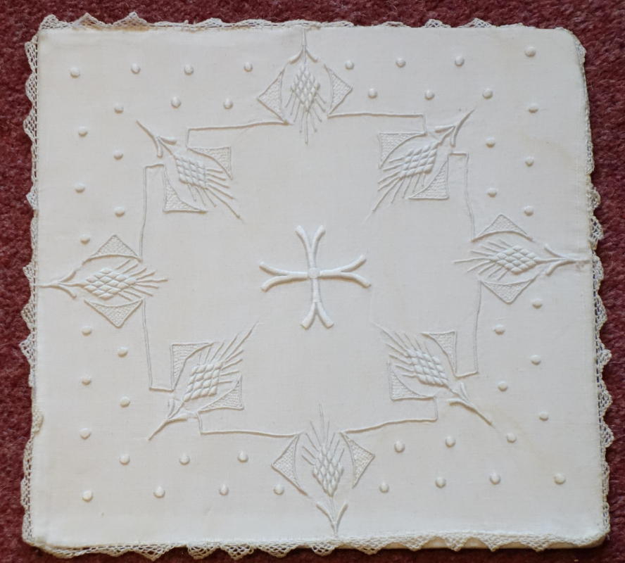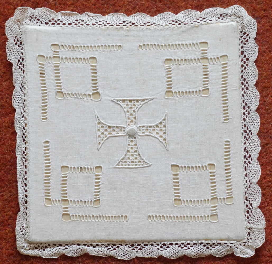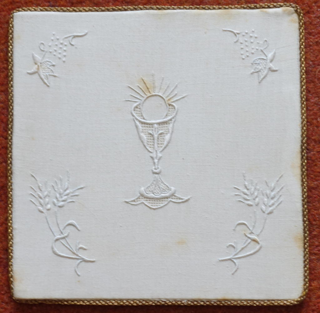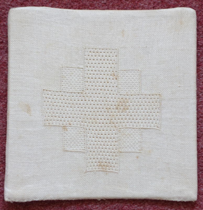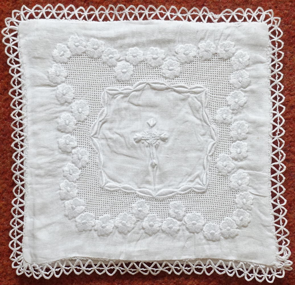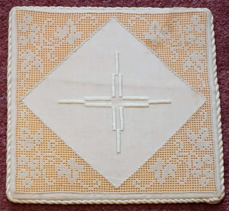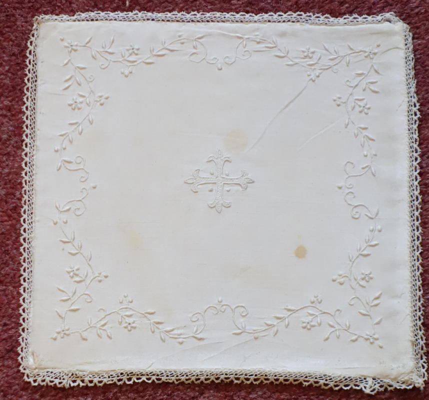 We usually have a variety of second-hand Altar Linens in stock. These currently include Purificators, Corporals, Lavabo Towels, Palls, both plain and with embroidery or lace. Below are items from our current stock, but our stock does change all the time, so please contact us for up to date details of availability.