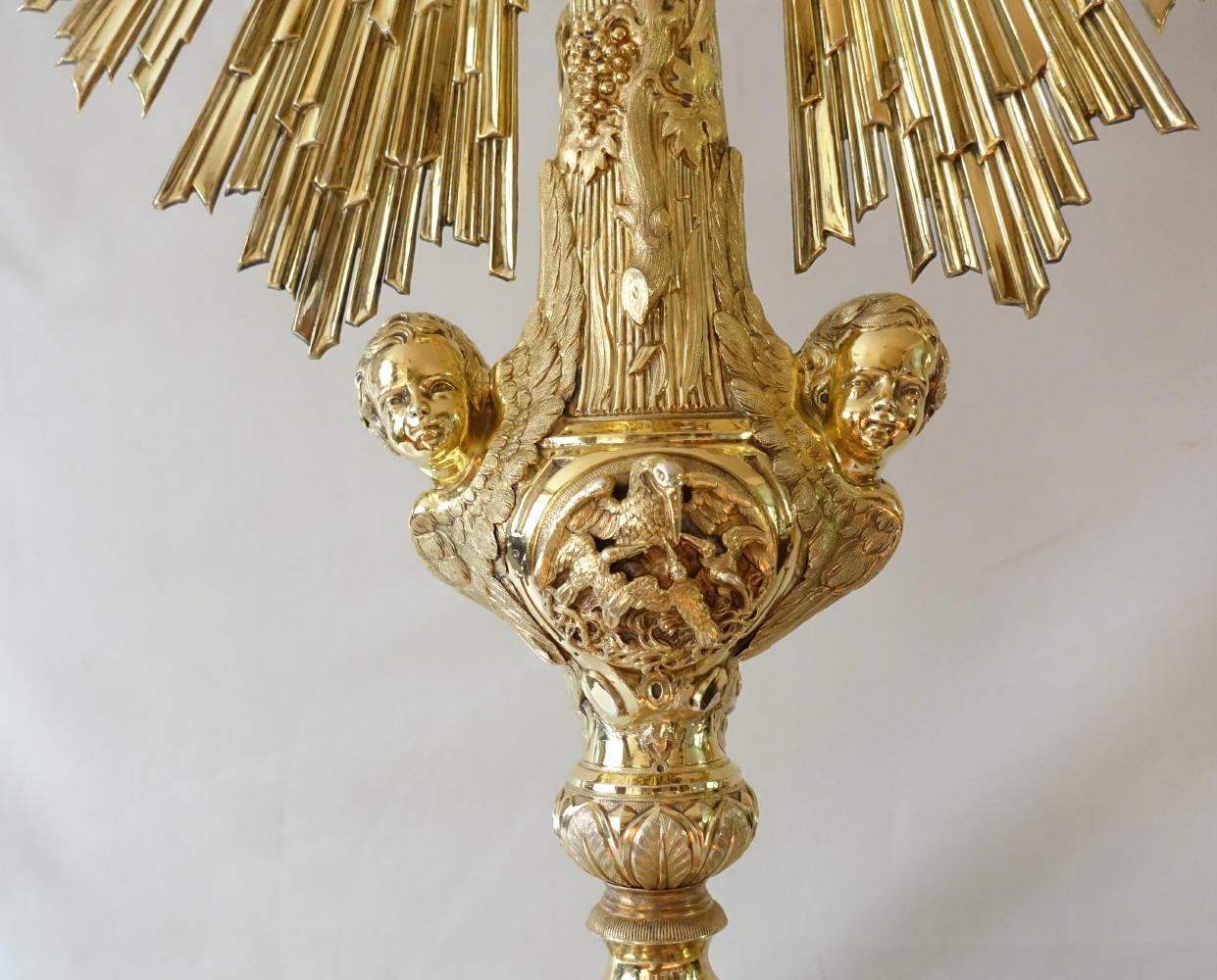 Solid silver gilt 19th century French sunburst Monstrance, complete with solid silver Lunette.