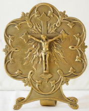 Ref 9051. Antique Brass Pax Brede with crucifixion