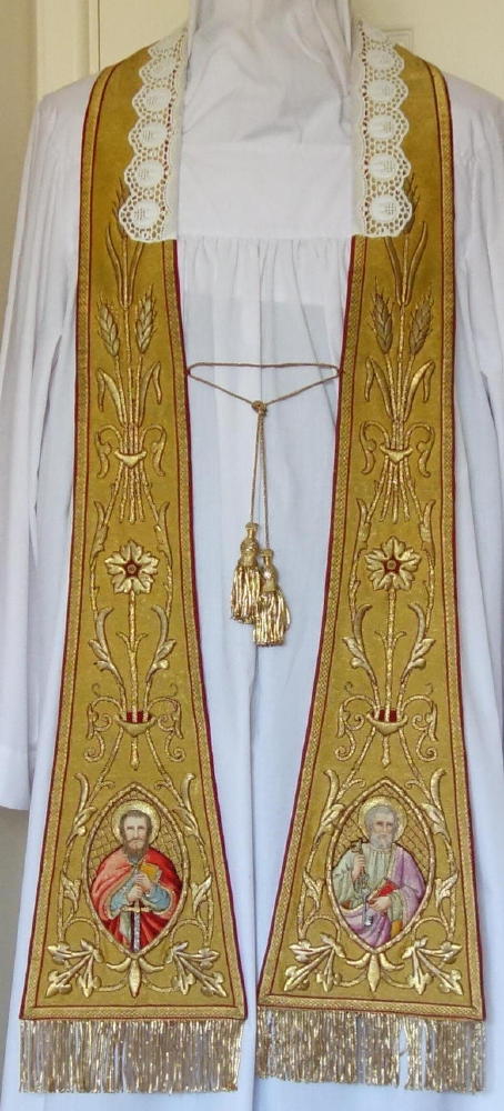 Complete with matching Stole, embroidered with the same designs, finished with gold tassels at the centre.