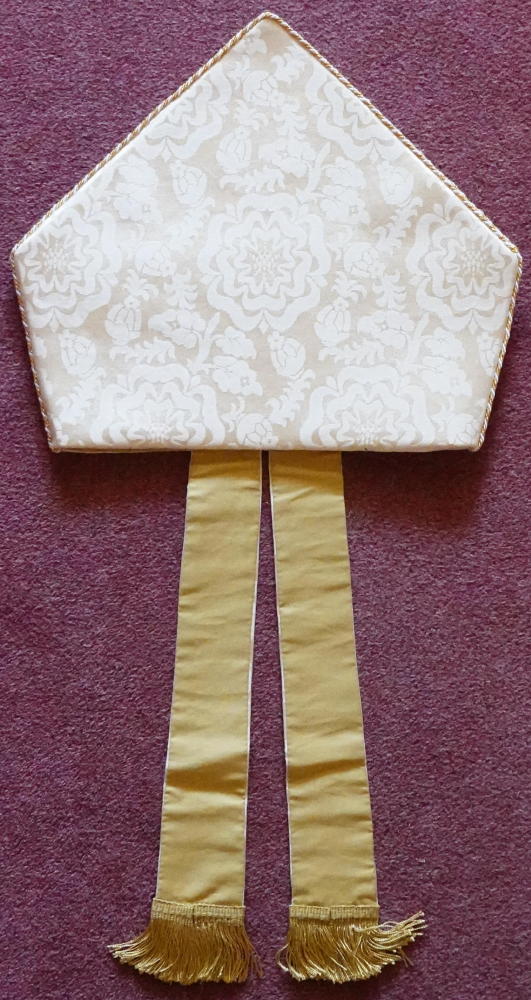 Made in Tudor Rose ivory silk based damask, lined in gold cotton lining.