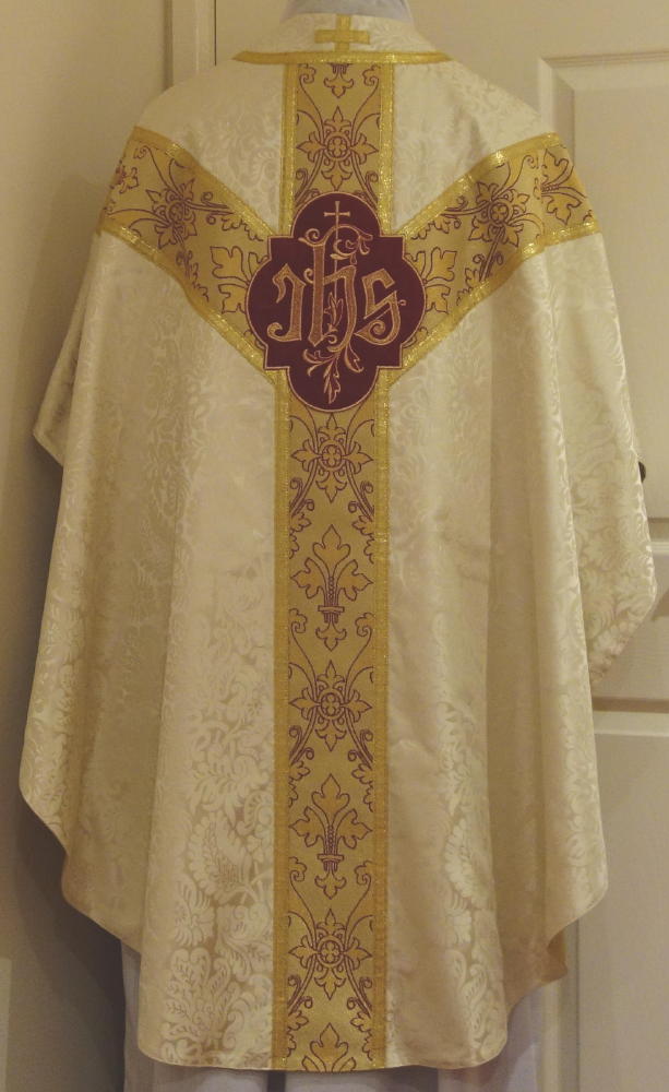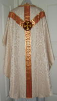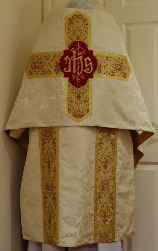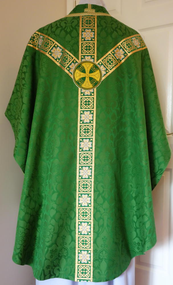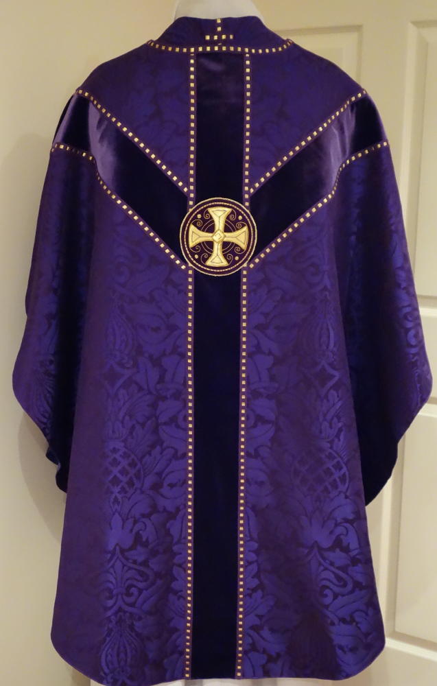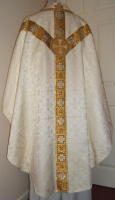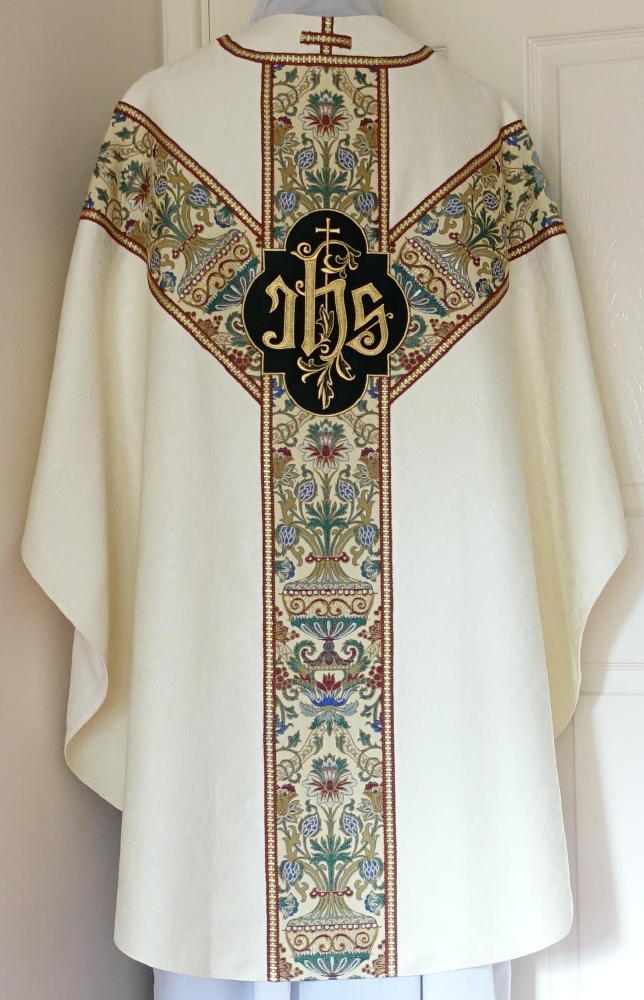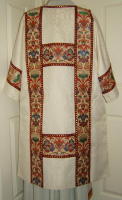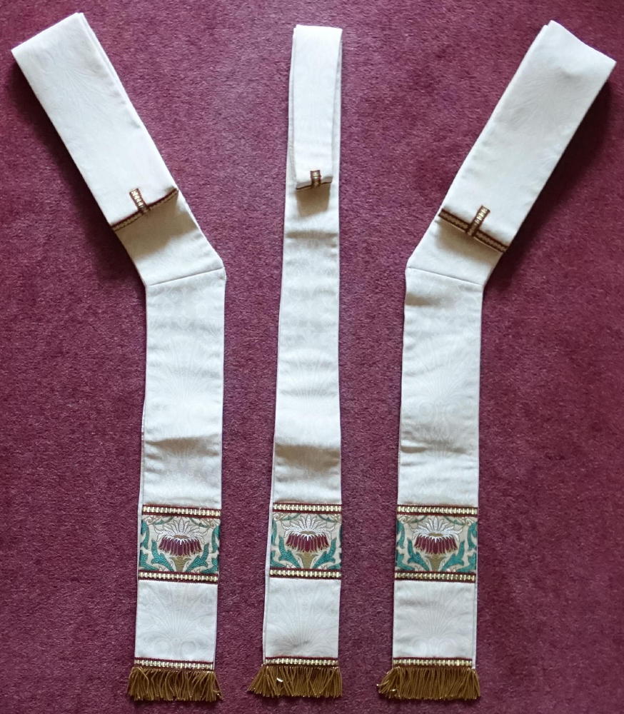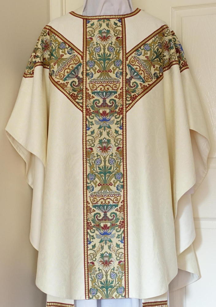 Some examples of sets made follow, but more or less any combination of fabric, orphrey, braid, and motif is possible, so please do contact us to discuss your requirements.