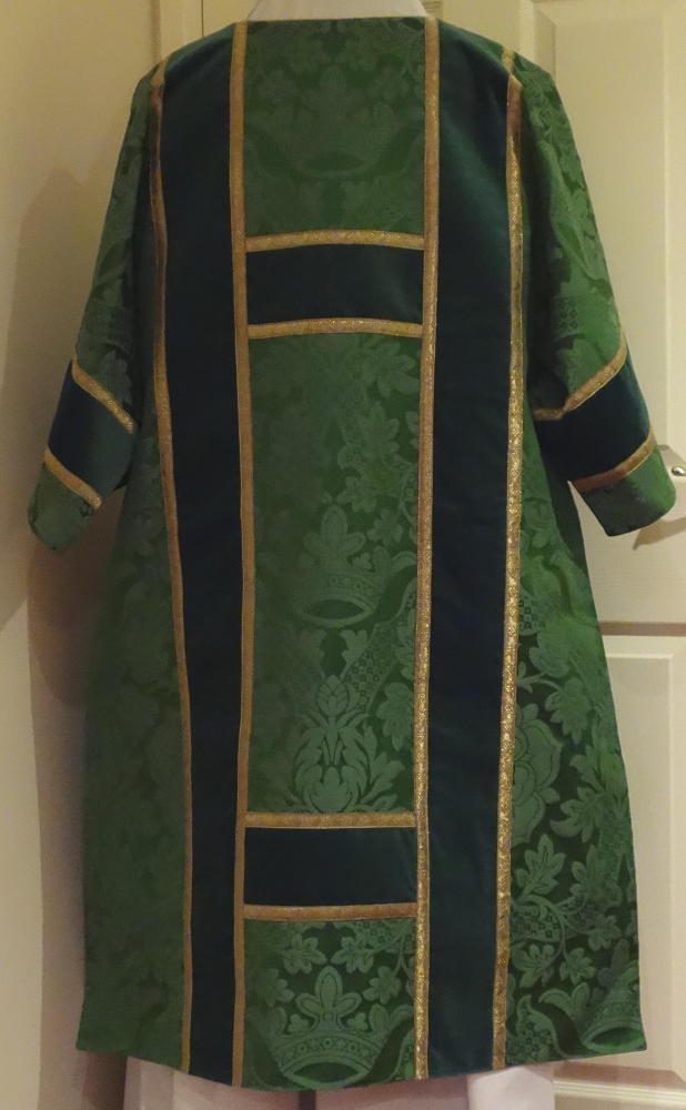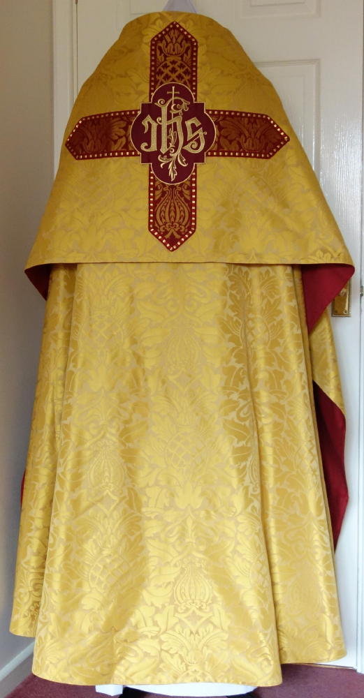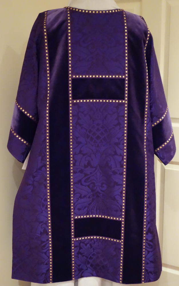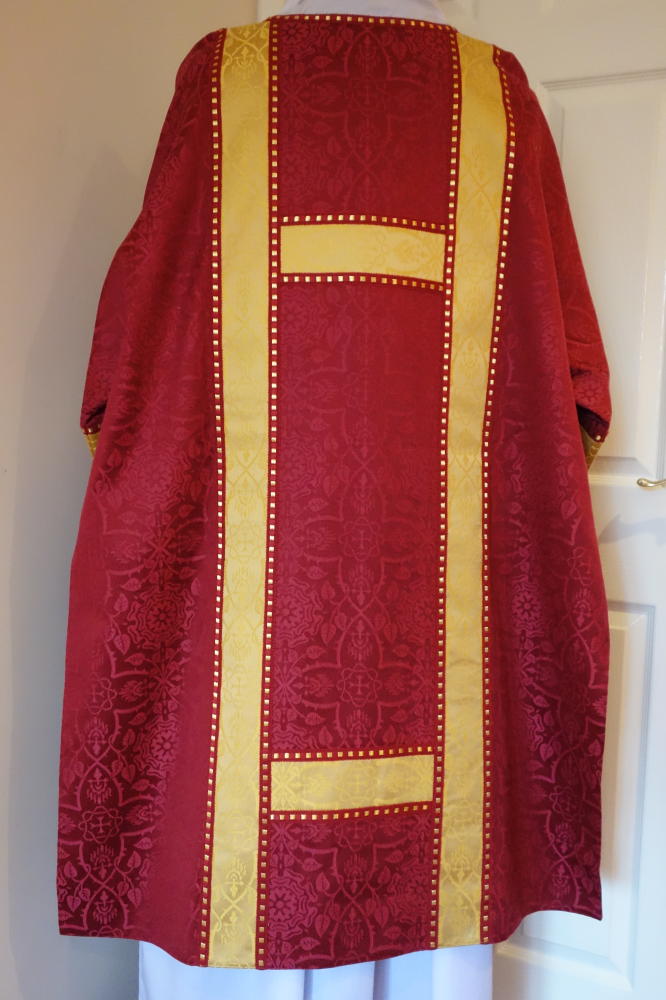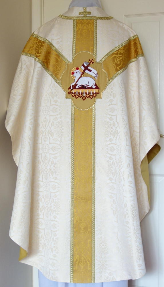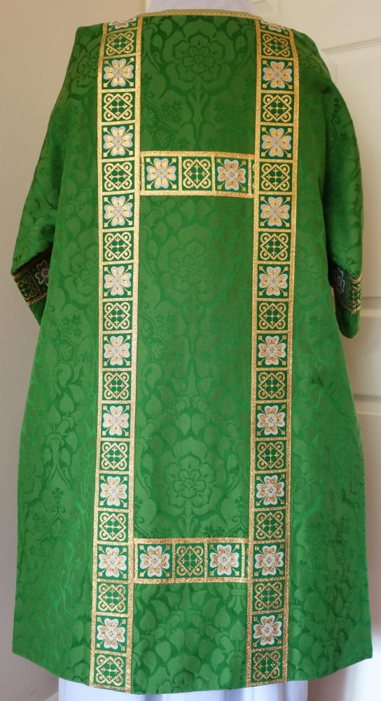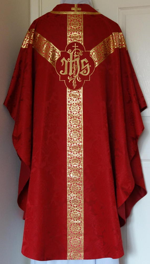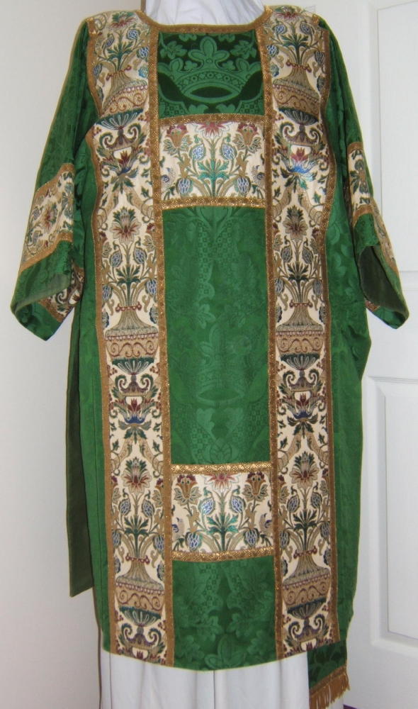 Some examples of sets made follow, but more or less any combination of fabric, orphrey, braid, and motif is possible, so please do contact us to discuss your requirements.