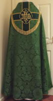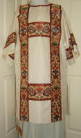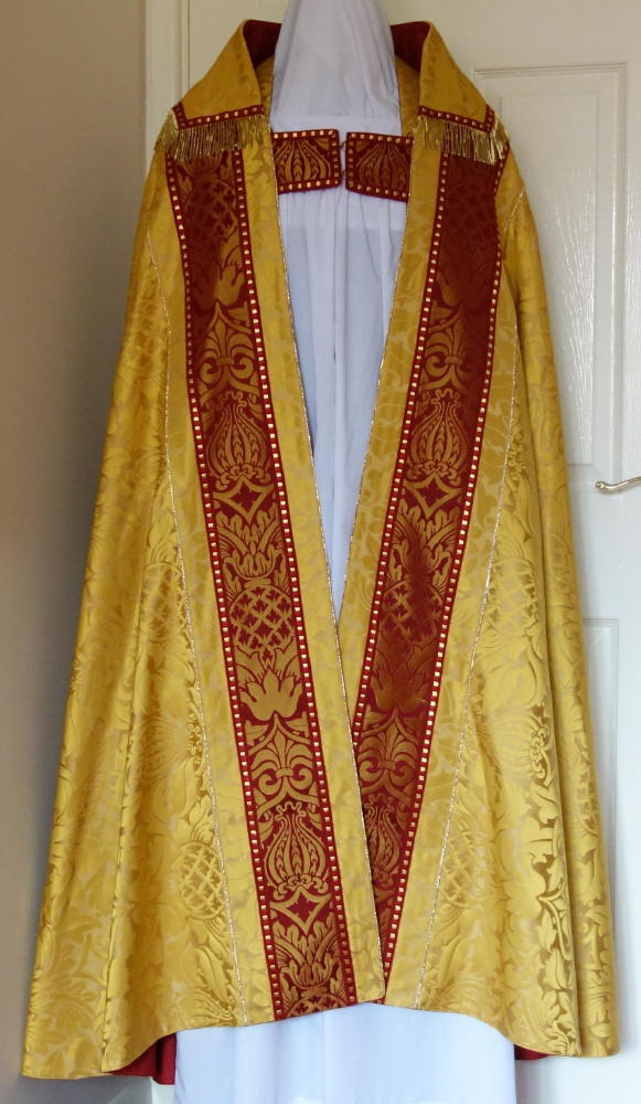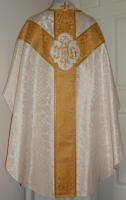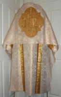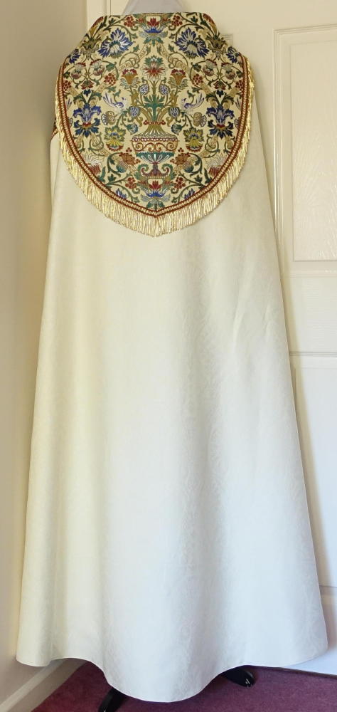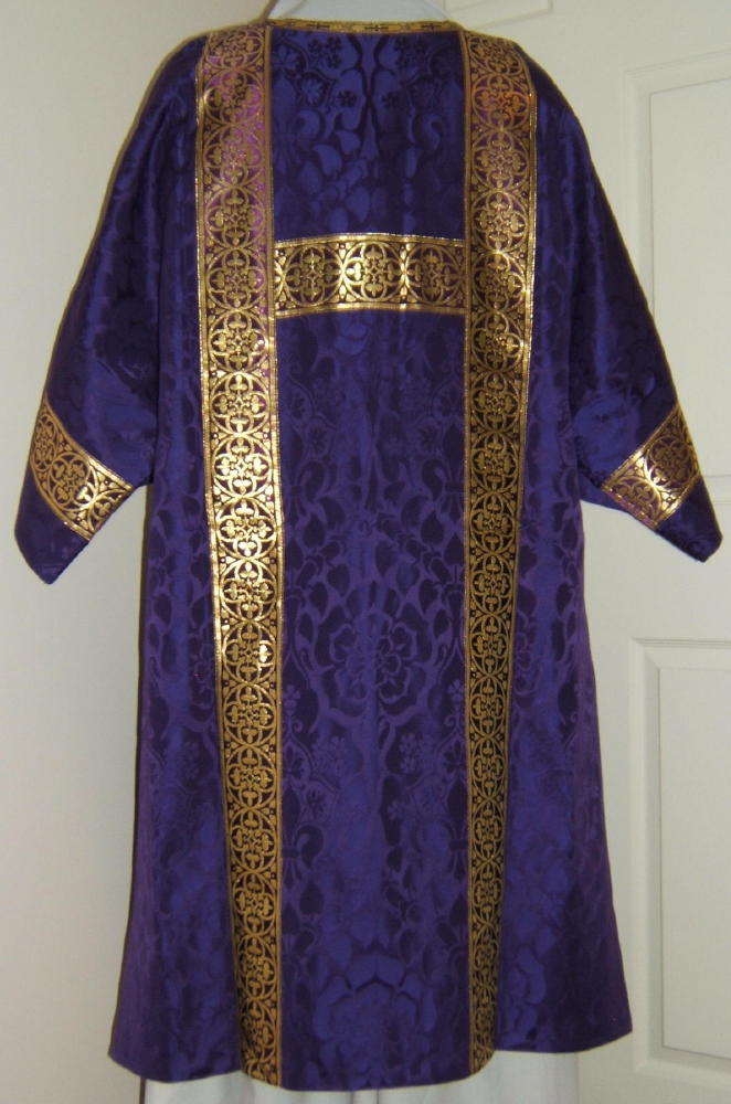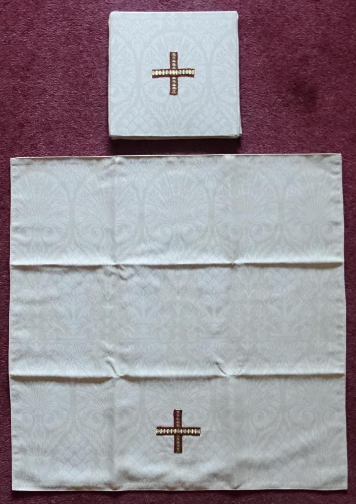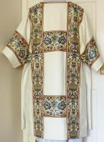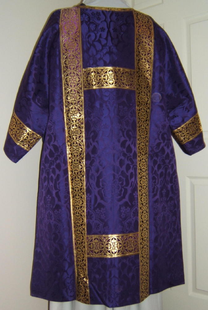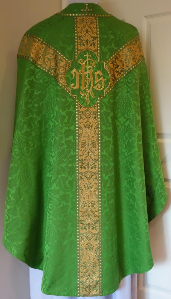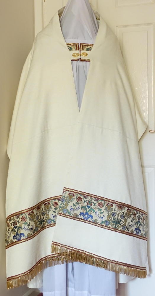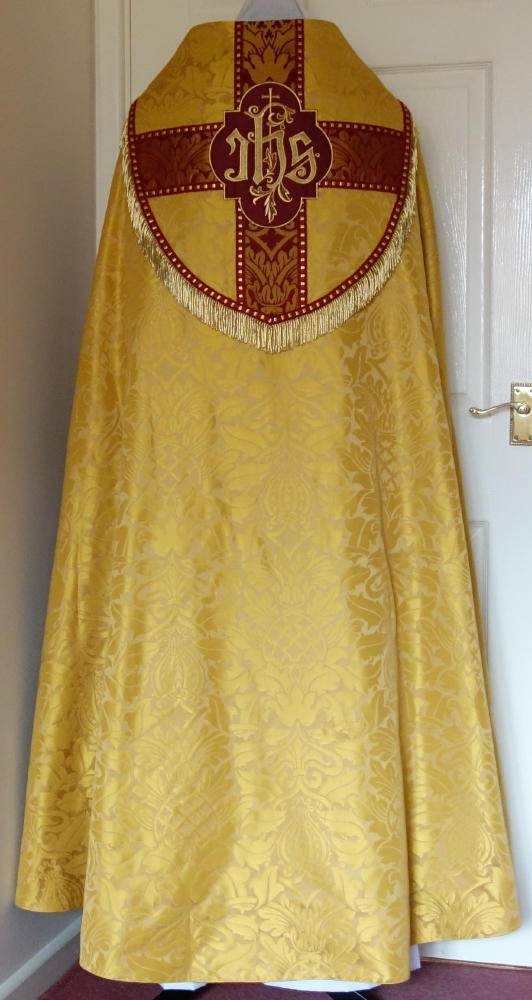 Some examples of sets made follow, but more or less any combination of fabric, orphrey, braid, and motif is possible, so please do contact us to discuss your requirements.