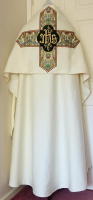 Motif appliqued at the centre-back of the Chasuble, Cope & Humeral Veil if required, to be chosen from a selection, including hand-embroidered and machine-embroidered motifs.