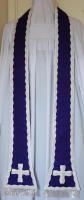 Illustrated below is a white/purple reversible Stole which is currently in stock.