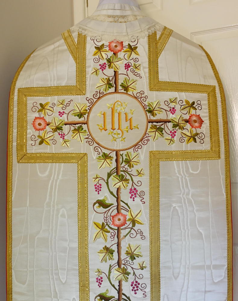 Below are some white Low Mass Vestments currently available, but our stock is changing all the time, so please do contact us for up to date information.